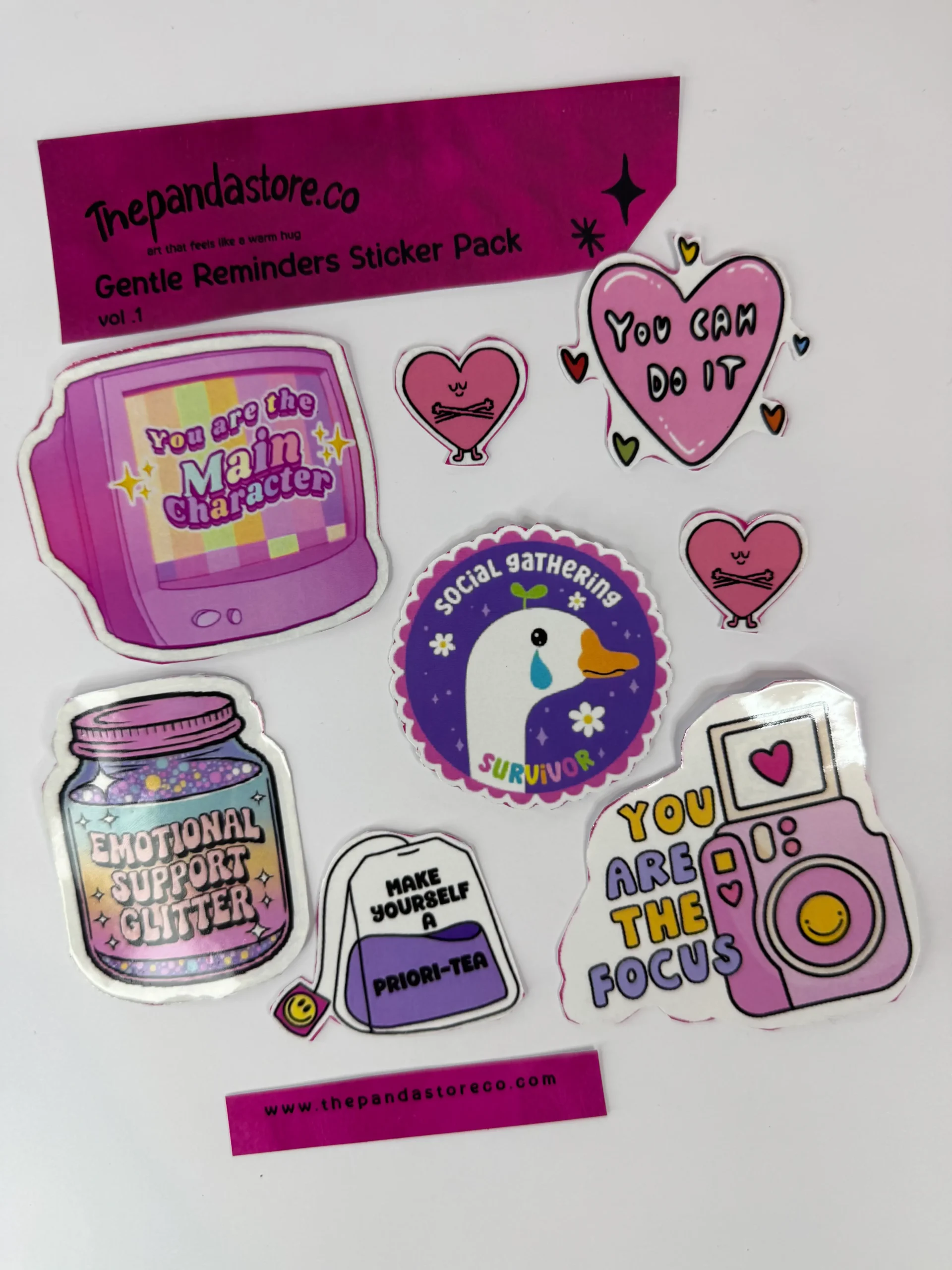 A curated sticker pack featuring original designs, with a different set of stickers in each pack. Perfect for decorating journals, planners, laptops, phone cases, sketchbooks, water bottles, and more. Easy to use and fun to collect, mix, match, and personalize your everyday essentials with art that stands out.